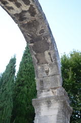 この町にもガロ・ローマの遺跡とロマネスクの教会はある。オフィス・ドゥ・トゥーリズムの前にある小さめの凱旋門は保存状態はよくないが、雨の当たらない部分には彫刻がよく残っていた。植民都市の中心、フォーロムの広場に建てられたもので、1世紀の建築である。説明版に添えられた1845年に描かれた絵を見ると下半分が地中に埋まっていたことがわかる。