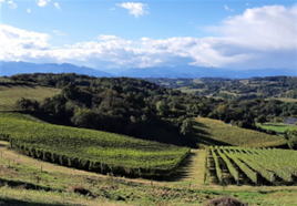 | 283. Jurançon(ジュランソン)Sud-Ouest:1936。ピレネー・ザトランティック県のAOCベアルンのうちPau(ポー)川左岸に広がるCardesse(カルドゥス)、Lasseube(ラスーブ)、Lucq-de-Béarn(リュック・ドゥ・ベアルン)、Monein(モネン)など25のコミューンで作られる白ワインだけを独立させたアペラシオン。土質はクリマによって8種類あると言われるが、基本的にはフリント礫混じりの砂質粘土と砂岩風化土が混在し、白色石灰岩の氷河堆石(モレーン)が随所に見られる。 辛口と甘口がある。主要品種:プティ・マンサン、グロ・マンサン(合わせて50%以上)。Courbu blanc、Camaralet de Lasseube、Lauzet。ブドウはしばしば灰色カビ病に冒されて貴腐の状態になり、さらに干すことによって極限まで糖度を高める。果汁糖度は辛口に使うもので187g/ℓ、遅摘みのJurançonで226g/ℓ、Jurançon portant la mention(ジュランソン・ポルタン・ラ・マンシオン)と呼ぶ遅摘み藁干しのもので289g/ℓに及ぶ。アルコール度数は最高17度に達する。瓶詰めする前に木製の大樽で熟成する。 辛口は輝きのある薄緑色、蜂蜜やトロピカルフルーツ、のアロマにエニシダや蜜蝋のニュアンスがある。名産の「Saumons de l'Adour」と呼ばれるピレネーのトラウトなどの川魚やソースで仕上げた鶏肉、ピレネーの山羊乳チーズなどと相性がいい。アペリティフとしてもフリュイ・ドゥ・メール、シャルキュトリなどによく合う。3~5年で飲み頃、よい年のものは8~10年保存可能。 甘口は黄金色で桃や果物のコンフィ、クローブのようなアロマにパイナップルやパッションフルーツ、シナモンなどのノートがある。フォワグラやオッソー・イラティなどピレネーの羊乳チーズとの相性が抜群。ロックフォール、ブルー・ドーベルニュなど青カビチーズにもよく合う。7~15年保存可能。 284. Madiran(マディラン)Sud-Ouest:1948。ジェール県の3つ、オート・ピレネー県の6つ、ピレネー・ザトランティック県の28のコミューンで作られる赤ワインだけのアペラシオン。土質は石灰質粘土と石灰質砂岩の風化土。 主要品種:タナ(40~80%)。補助品種:カベルネ・ソーヴィニョン、カベルネ・フラン、フェール・セルヴァドゥ。作られる赤ワインには大きく3つのタイプがある。通常タンク発酵で作られるワインは瓶詰め前に木製の大樽で熟成され、出荷するまでにさらに12か月以上カーヴで寝かせる。熟成期間の短いフルーティなものと、カーヴでの熟成に数年かけて樽香やタンニンのバランスがとれたものの2タイプに分かれる。3番目のタイプは、木桶で1次発酵、木製の大樽で2次発酵する伝統的製法のワインで、ごく少量生産される中から選りぬかれたワインを長期間木樽熟成したもの。タナの特徴が完璧に際立つ。濃いルビー色。黒いキイチゴやカシスのようなアロマを持ち、がっしりしたボディで強いタンニンを持つ。セップ茸を添えたジビエの蒸し煮や赤ワイン煮、ローストした猟鳥、ハト、合鴨、牛肉などの赤ワインソースといったスパイシーなバスク料理に最もよく合う。オッソー・イラティのようなバスクのチーズとも相性がいい。ワインを開かせるために通常1時間ほど前からデカンタージュし、14~16℃で供する。3~5年で飲み頃。長期樽熟成のいい年のものは10年以上の保存が可能。 同じ地域で作られる白ワインはPacherenc du Vic-Bilhという別のAOC。